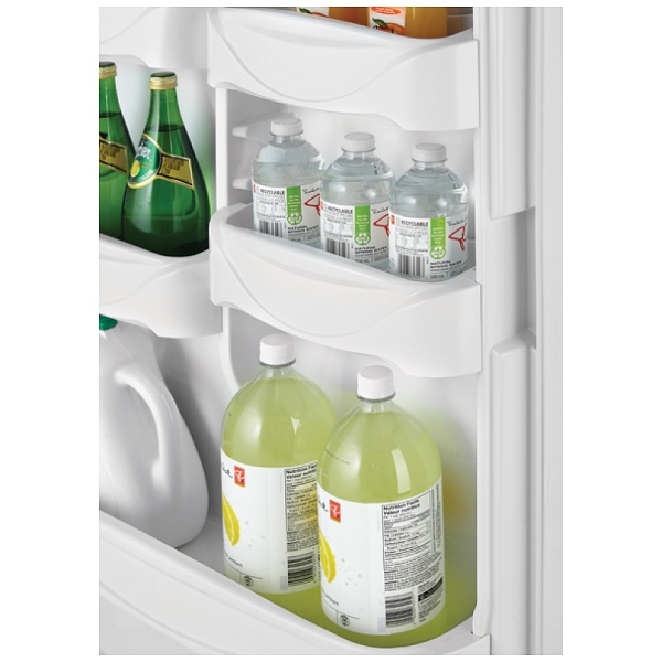 This Danby DFF501WDD All Refrigerator Danby DFF501WDD 17.7 cu. ft. Freestanding All-Refrigerator with 4 Adjustable Glass Shelves, Dual See-Thru Crispers w/ Cover, Clear Meatpan, Reversible Hinge, Frost-Free Operation and Energy Star ... View Video